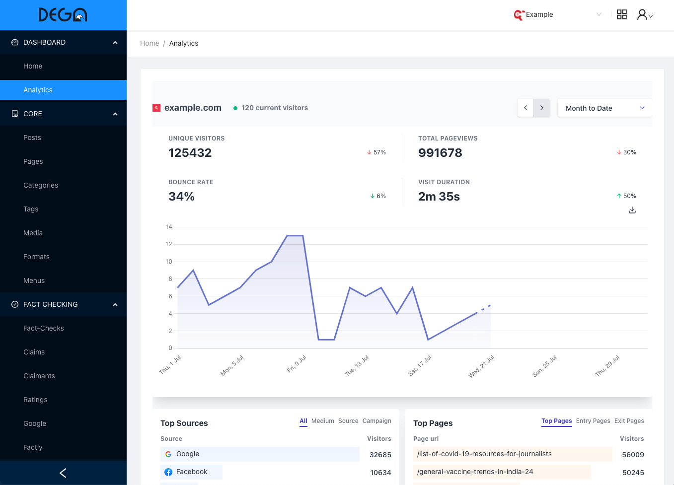 Dega incorporates all the best practices of the ‘fact-checking’ ecosystem as mandated by the International Fact Checking Network (IFCN) Code of principles into the platform. It enables organisations to seamlessly publish fact-check stories like any other. With all technology platforms moving towards using ClaimReview & MediaReview schemas as a means to identify fact-check content, Dega helps newsrooms implement this seamlessly without any major changes to the existing technical architecture. Dega has various tools within the platform that would aid fact-checkers with their research. With Dega, SEO and all the other publishing best practices are built-in. Dega's fact-check service is a product of feedback from Factly and other fact-checking organisations with extensive experience in fact-checking.